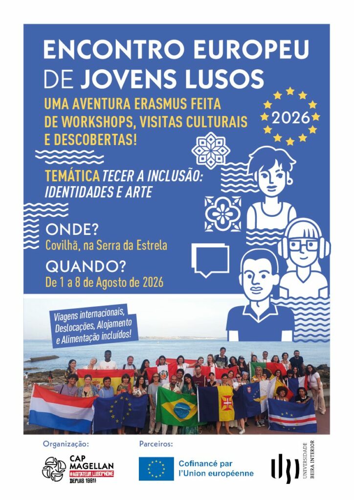 16 février 2026Os Encontros Europeus de Jovens Lusos (EEJL) estão de volta! O projeto europeu Tecer a Inclusão: IDENTIDADES & ARTE (TEIA) é uma mobilidade de 8 dias dirigida a trabalhadores e animadores juvenis europeus, concebida para reforçar a participação juvenil, a inclusão social e a qualidade do trabalho socioeducativo, através de metodologias artísticas, participativas e ligadas ao território.