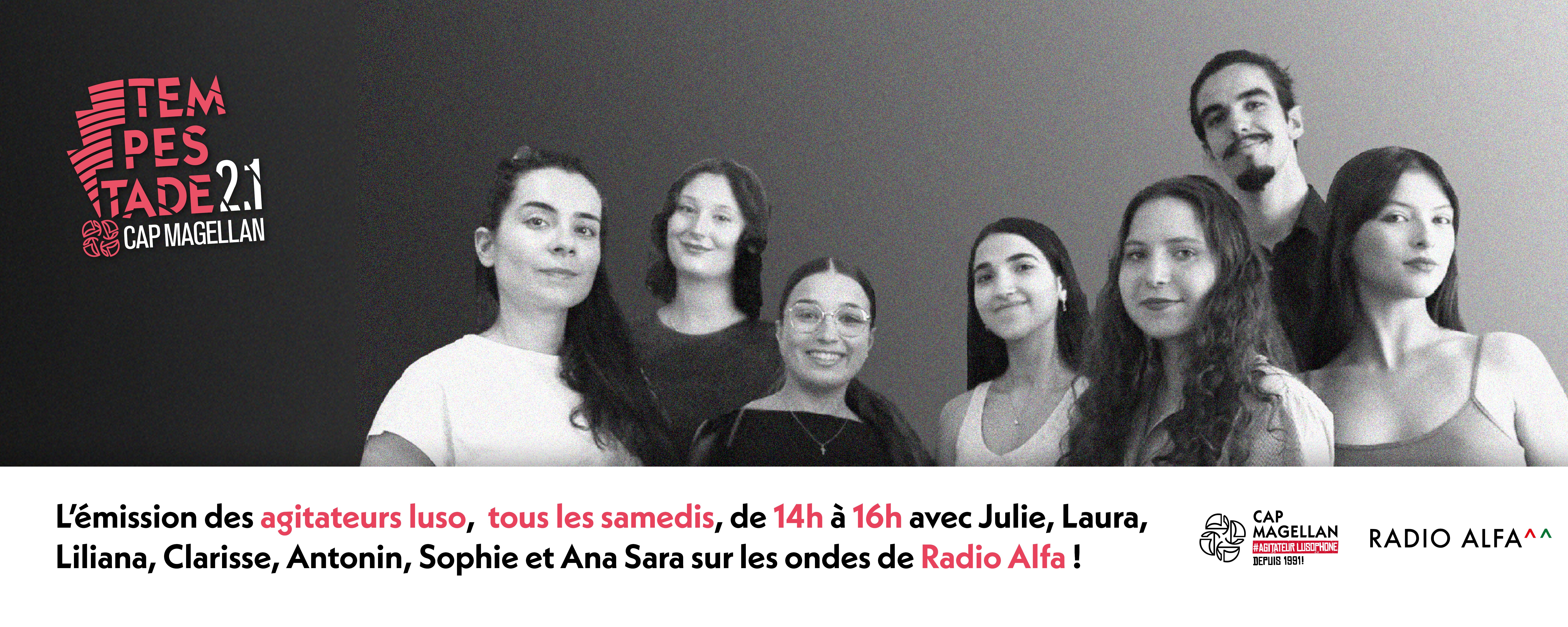 O programa dos lusodescendentes e dos lusodependentes. Todos os sábados, entre as 14h e as 16h (horário de Paris), com a Julie, a Laura, a Liliana, a Clarisse, o Antonin, a Sophie e a Ana Sara, só… na Rádio Alfa!